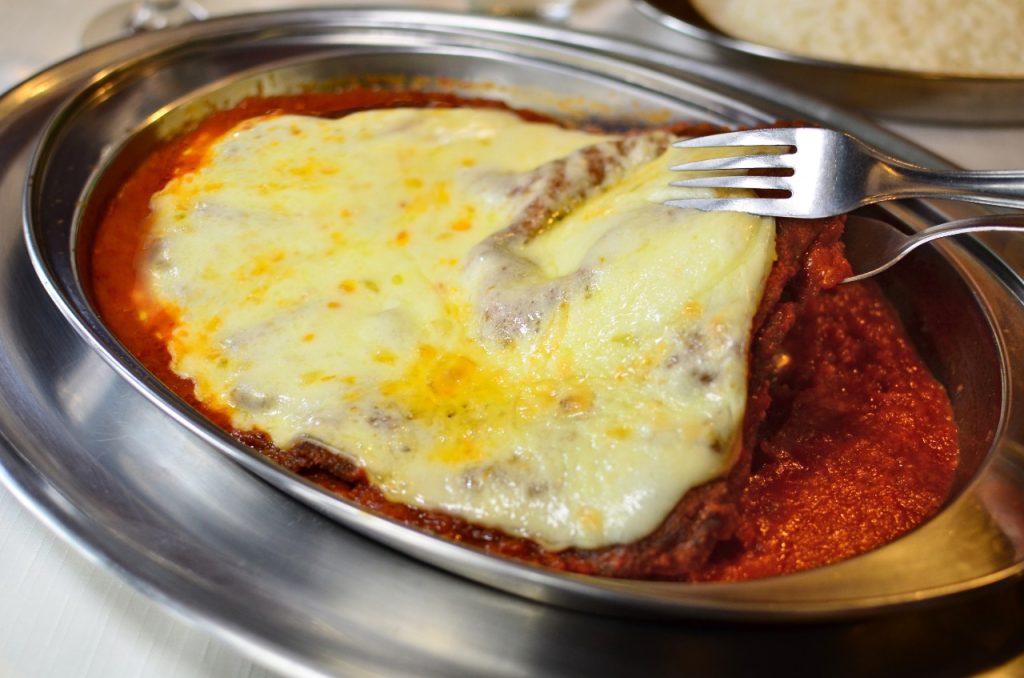 Um clássico da capital paulista! Um suculento filé mignon empanado e frito, envolvido por camada generosa de molho de tomates e coberto de queijo muçarela, o bife à parmegiana tem um jeitão de prato tipicamente italiano, mas a receita é coisa nossa.